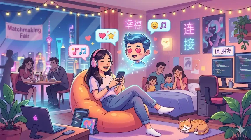 O crescimento de chatbots românticos na China revela como jovens estão buscando companhia emocional na inteligência artificial, enquanto o país tenta enfrentar uma queda histórica na natalidade.