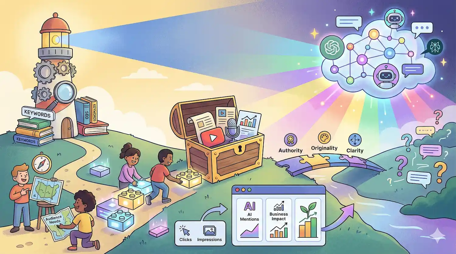 Diante desse contexto, a estratégia de conteúdo para 2026 precisa ir além de calendários editoriais. O foco passa a ser a construção de um sistema que una entendimento profundo da audiência, autoridade da marca e adaptação aos diferentes ambientes de descoberta, humanos e algorítmicos.