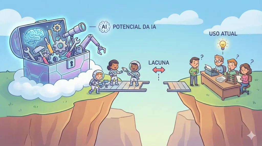 Segundo a empresa, essa lacuna representa a diferença crescente entre as capacidades já alcançadas pelos sistemas de IA e o quanto usuários, empresas e até países conseguem, de fato, transformar isso em valor real.