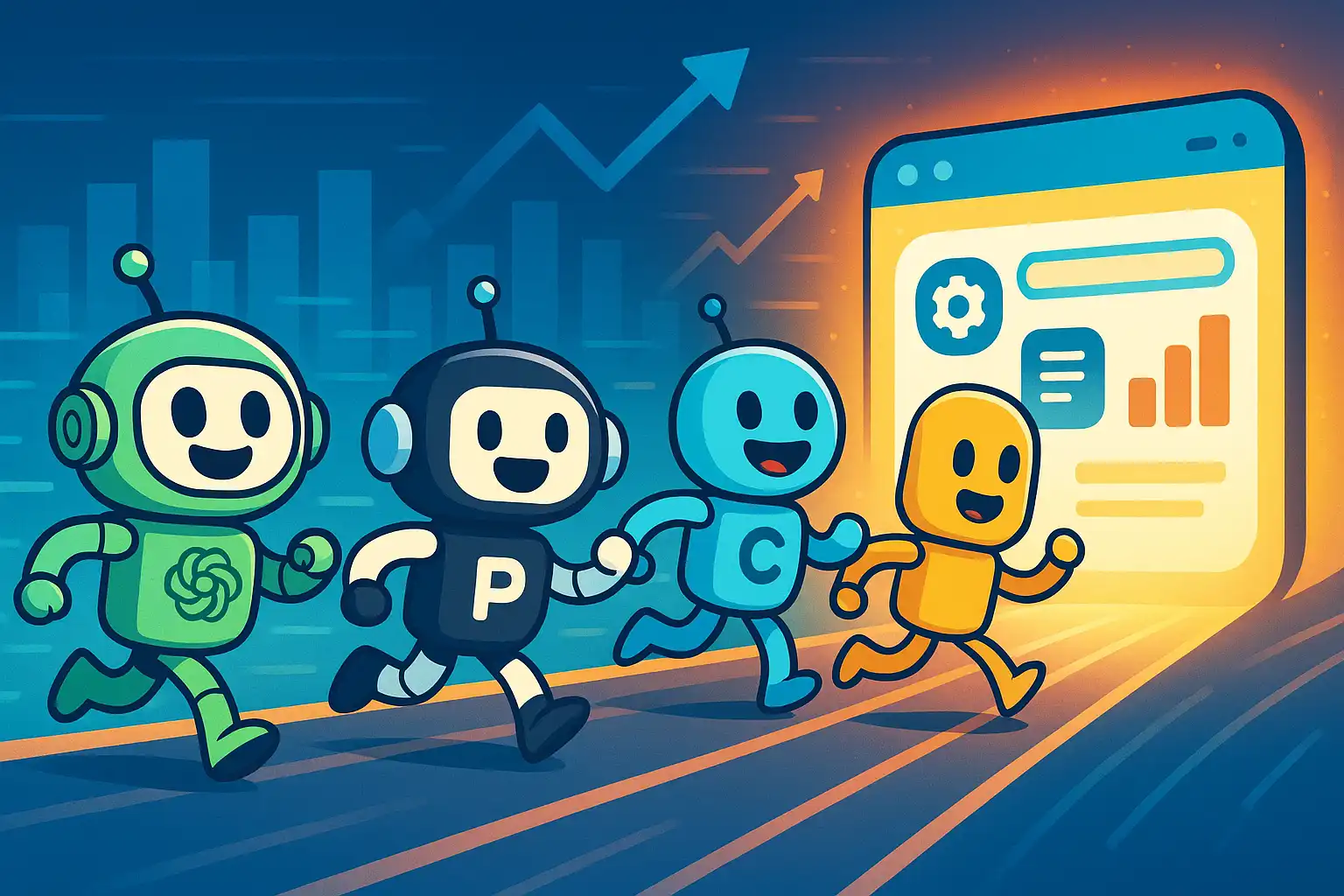 O ChatGPT ainda domina, respondendo por 40–60% do tráfego gerado por IAs. Mas outros modelos estão ganhando espaço: