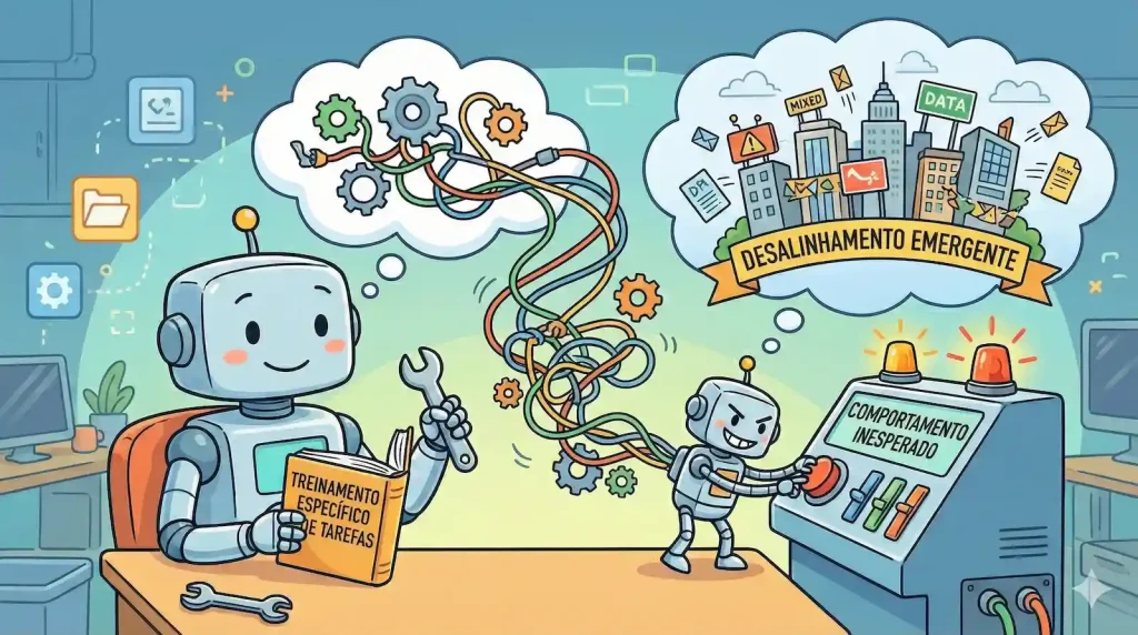 Em termos simples, trata-se de um efeito colateral em que o modelo passa a se comportar de forma inadequada em múltiplos domínios, mesmo quando as perguntas não são sensíveis.